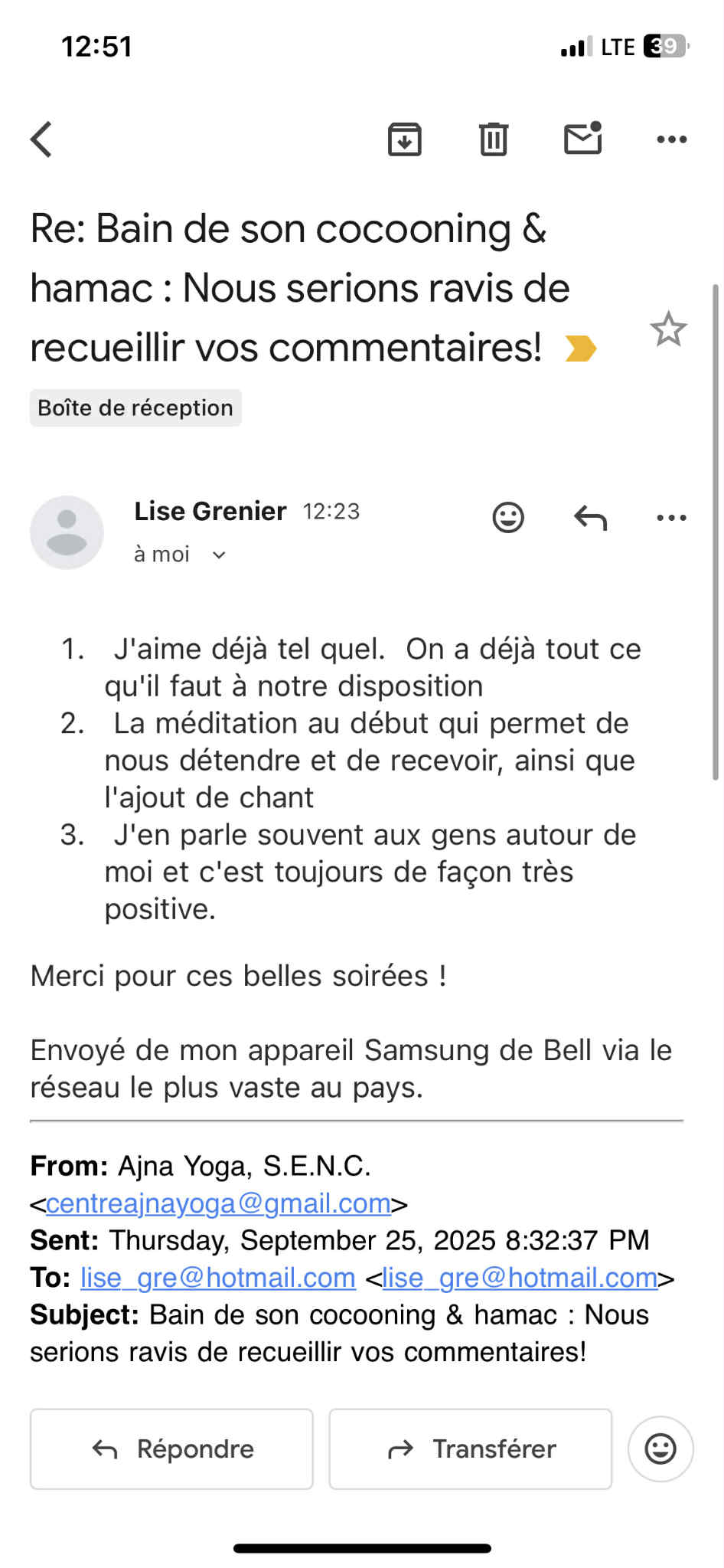 The experience connects me each time to my inner light and the light around me. I travel with the sounds that balance my vibration. THANKS!